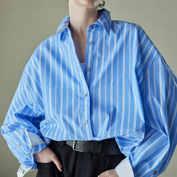 महिलाओं के लिए ओवरसाइज स्ट्रिप्ड सूती ब्लाउज सफेद लंबी आस्तीन की शर्ट के लिए आराम से फिट हल्के लंबे स्टेपल कपड़े