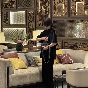महिलाओं के 2025 काले मखमली विंटेज राउंड गर्दन टी-शर्ट सेट कस्टम गंध हर मौसम में पैंट के साथ 2-टुकड़ा सेट