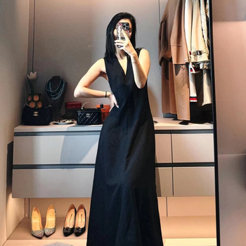 2025 महिलाओं के कैजुअल टेनेल-लिनन मैक्सी स्कैनिवियन ने न्यूनतम v-गर्दन आस्तीन डिजाइन आसान फर्श-लंबाई के लिए