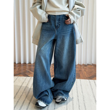 2025 וינטג 'אמריקאי בסגנון מותן גבוהה רגל רגועה ג' ינס מכנסיים לנשים שטופי מגלשן מוצק